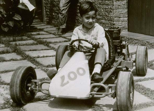 Det morsomme er dog at han af samme årsag nærmest kunne køre bil før han kunne gå. Da han var tre år gammel ræsede han rundt i en lille pedal-jeep og et år senere byggede hans far ham en motoriseret miniature-gocart, bygget op omkring en plæneklipper. Han var lige knapt stor nok til at kunne nå pedalerne i familiens jeep, da han begyndte at fræse rundt på de lokale veje i området omkring familiens farm. Skideballerne føg ham om ørerne, men han kunne simpelthen ikke lade være.